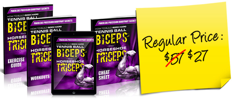 So even though professional bodybuilders, fitness models, celebrities and athletes have paid me as much as $2700 to fix their lagging arm development with these exact same methods, I’m making them available to YOU today for less than HALF what the regular retail price is going to be…